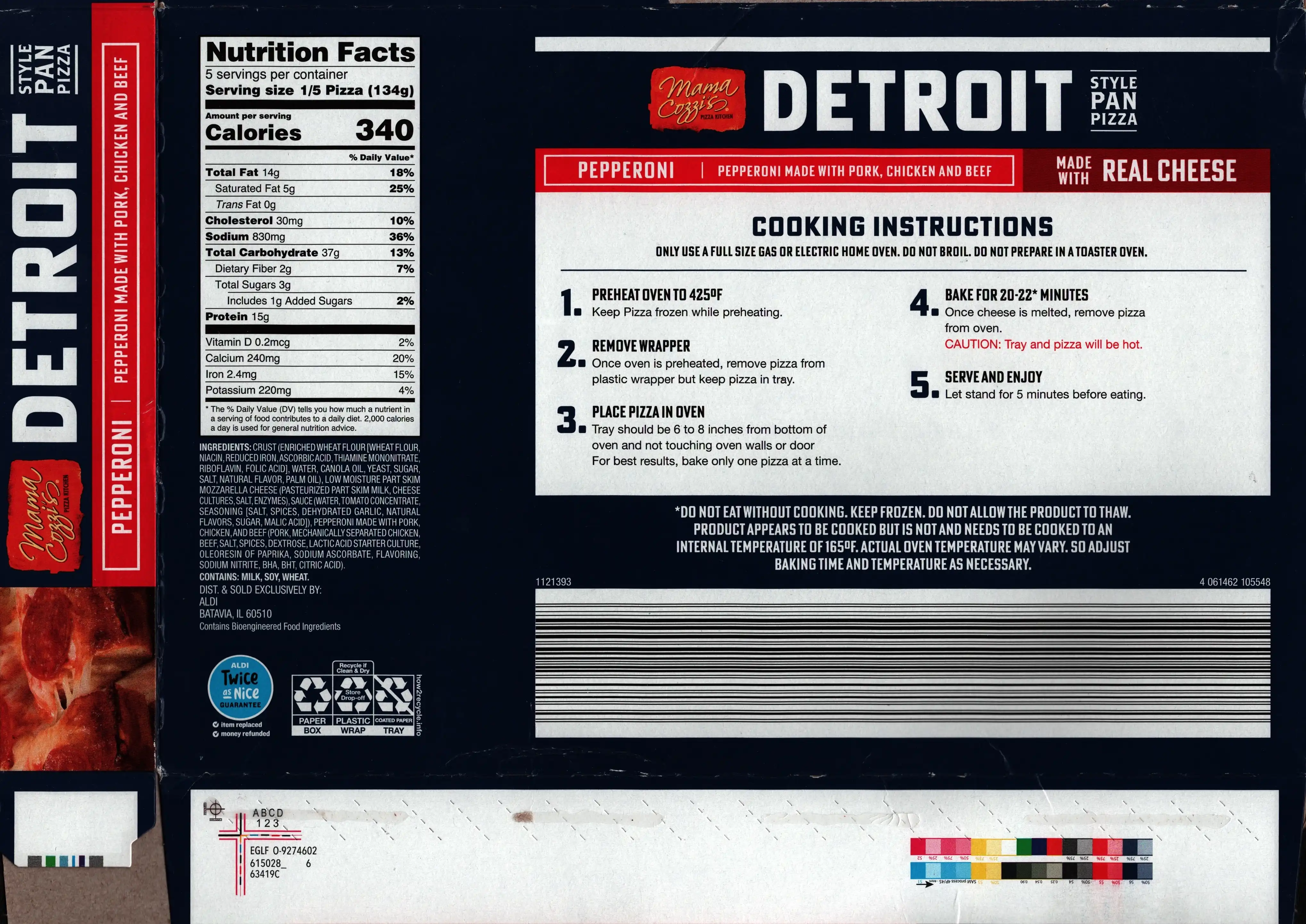 Mama Cozzi's Detroit Style Pepperoni Pan Pizza Ingredients Nutrition Facts Cooking Directions