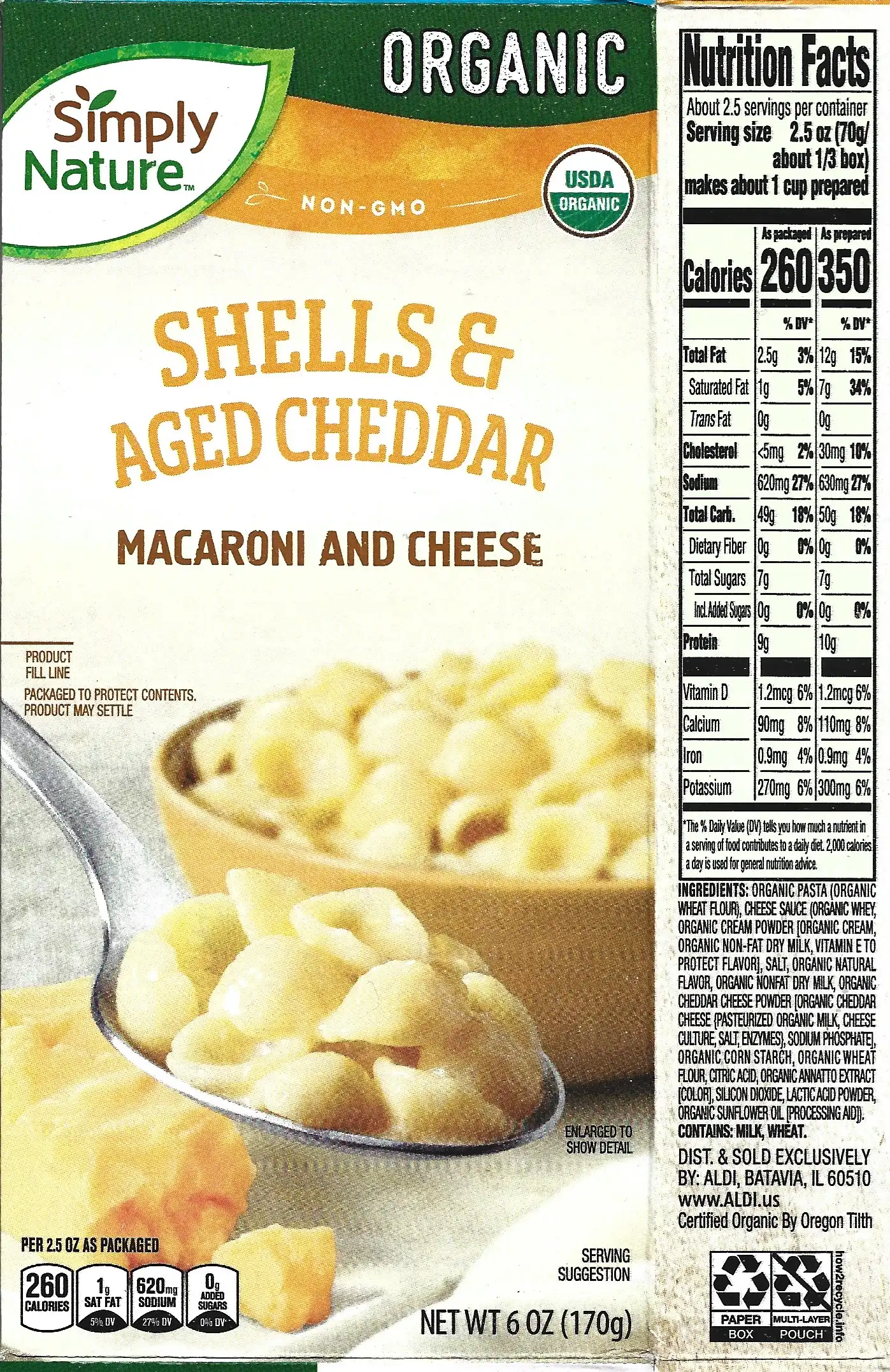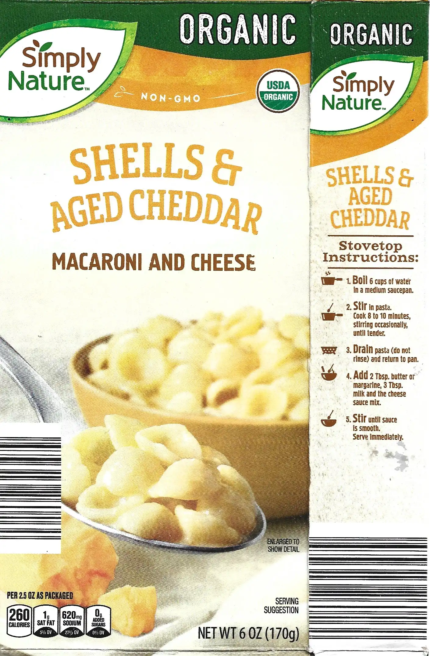 Simply Nature Shells & Aged Cheddar Macaroni & Cheese Ingredients Nutrition Facts