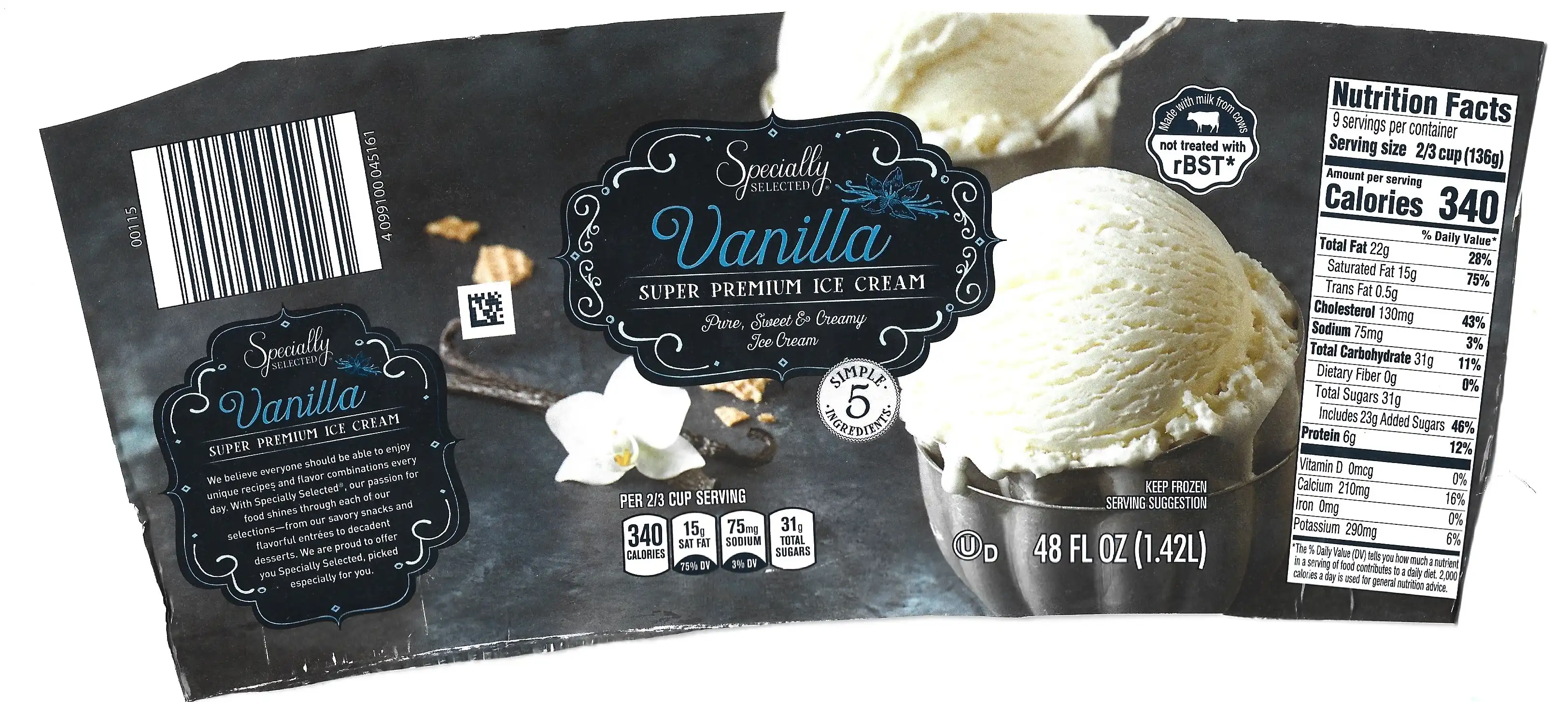 Specially Selected Vanilla Super Premium Ice Cream Ingredients Nutrition Facts