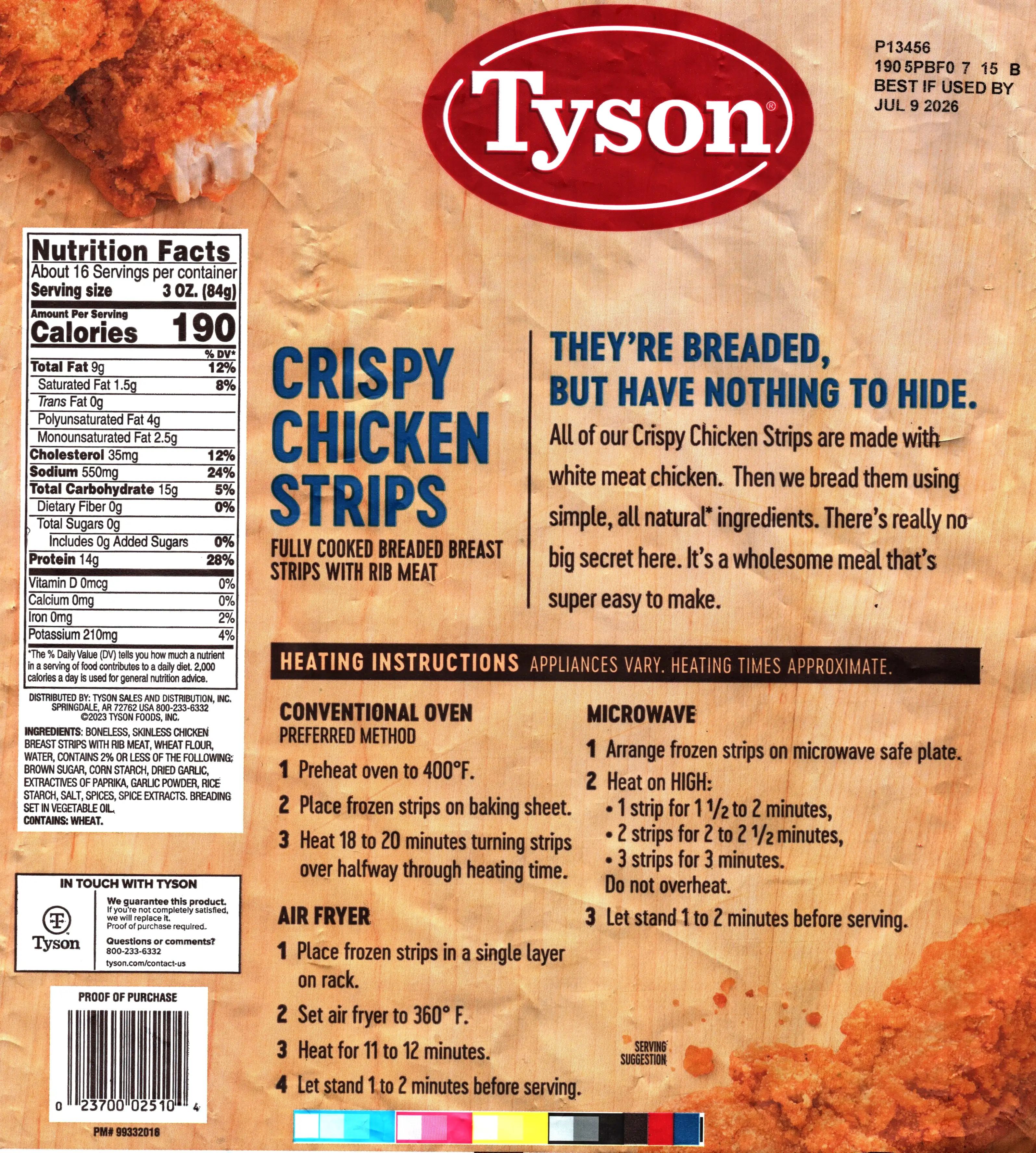 DISTRIBUTED BY: TYSON SALES AND DISTRIBUTION, INC. SPRINGDALE, AR 72762 USA 800-233-6332 ©2023 TYSON FOODS, INC.