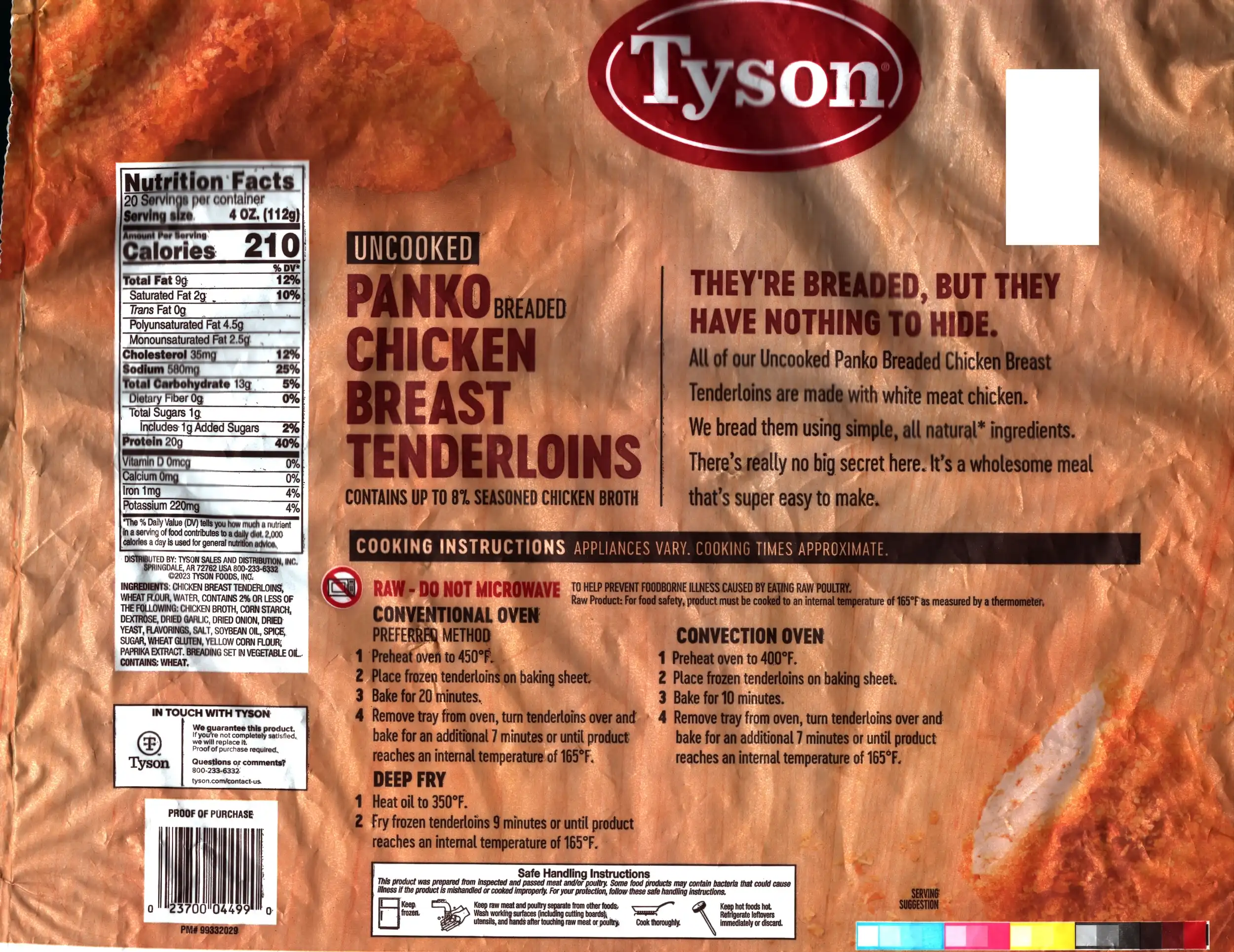Tyson Uncooked Panko Breaded Chicken Breast Tenderloins Ingredients Nutrition Facts Cooking Directions
