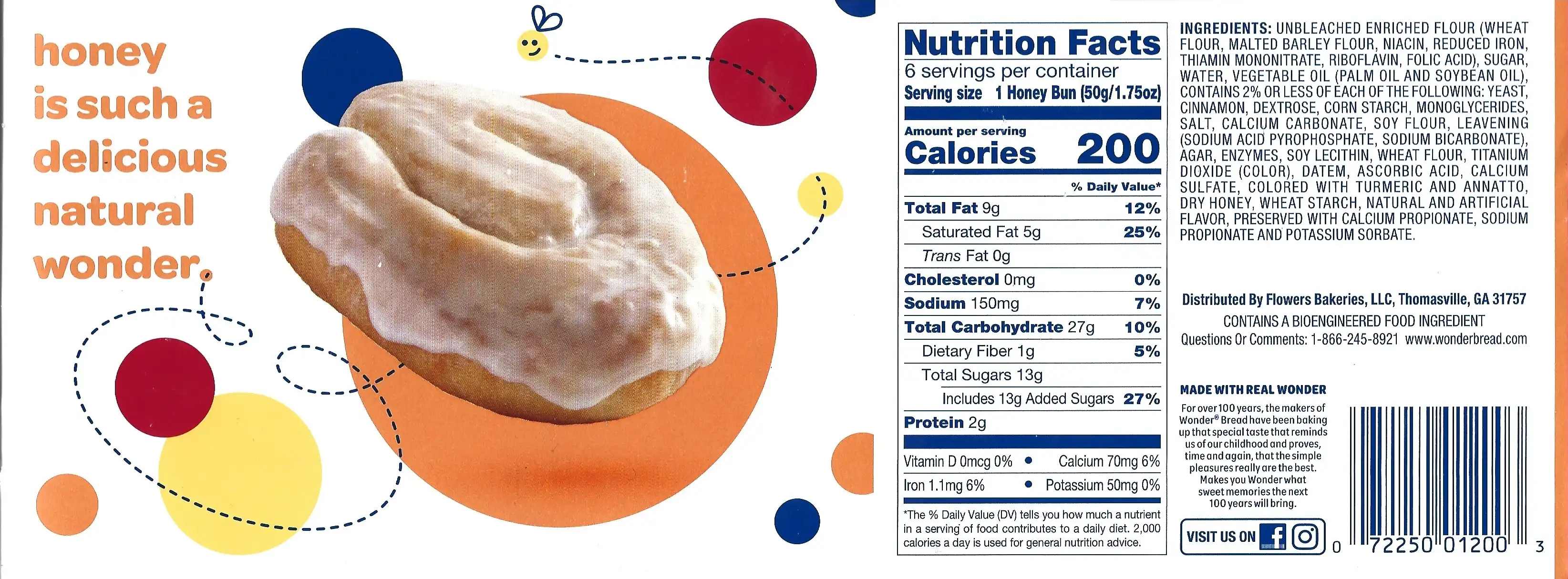 Distributed By Flowers Bakeries, LLC, Thomasville, GA 31757 CONTAINS A BIOENGINEERED FOOD INGREDIENT Questions Or Comments: 1-866-245-8921 www.wonderbread.com