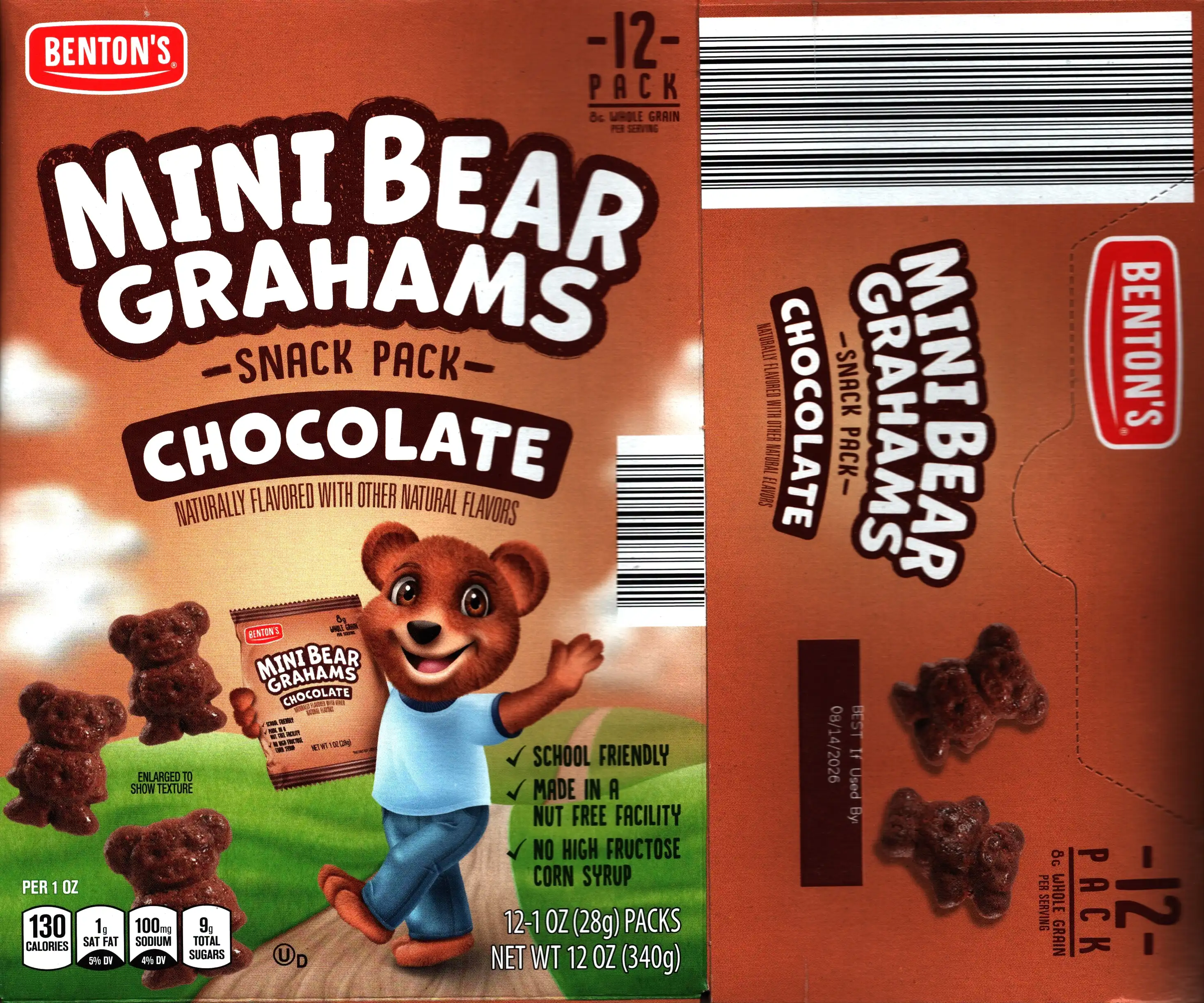 INGREDIENTS: GRAHAM FLOUR (WHOLE GRAIN WHEAT FLOUR), SUGAR, WHEAT FLOUR, SHORTENING (PALM AND CANOLA OILS), COCOA PROCESSED WITH ALKALI, CANOLA OIL, DEXTROSE, MALTODEXTRIN, CALCIUM CARBONATE, LEAVENING (BAKING SODA, AMMONIUM BICARBONATE), INVERT SUGAR, SOY LECITHIN, NATURAL FLAVOR, SALT, UNSWEETENED CHOCOLATE, EGGS, WHEY PROTEIN CONCENTRATE. CONTAINS: WHEAT, EGG, SOY AND MILK.