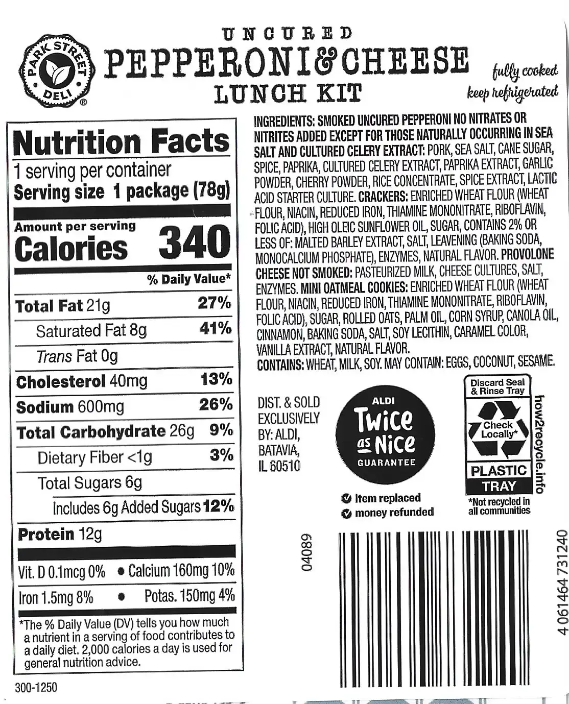 Park Street Deli Pepperoni & Cheese Lunch Kit Ingredients Nutrition Facts